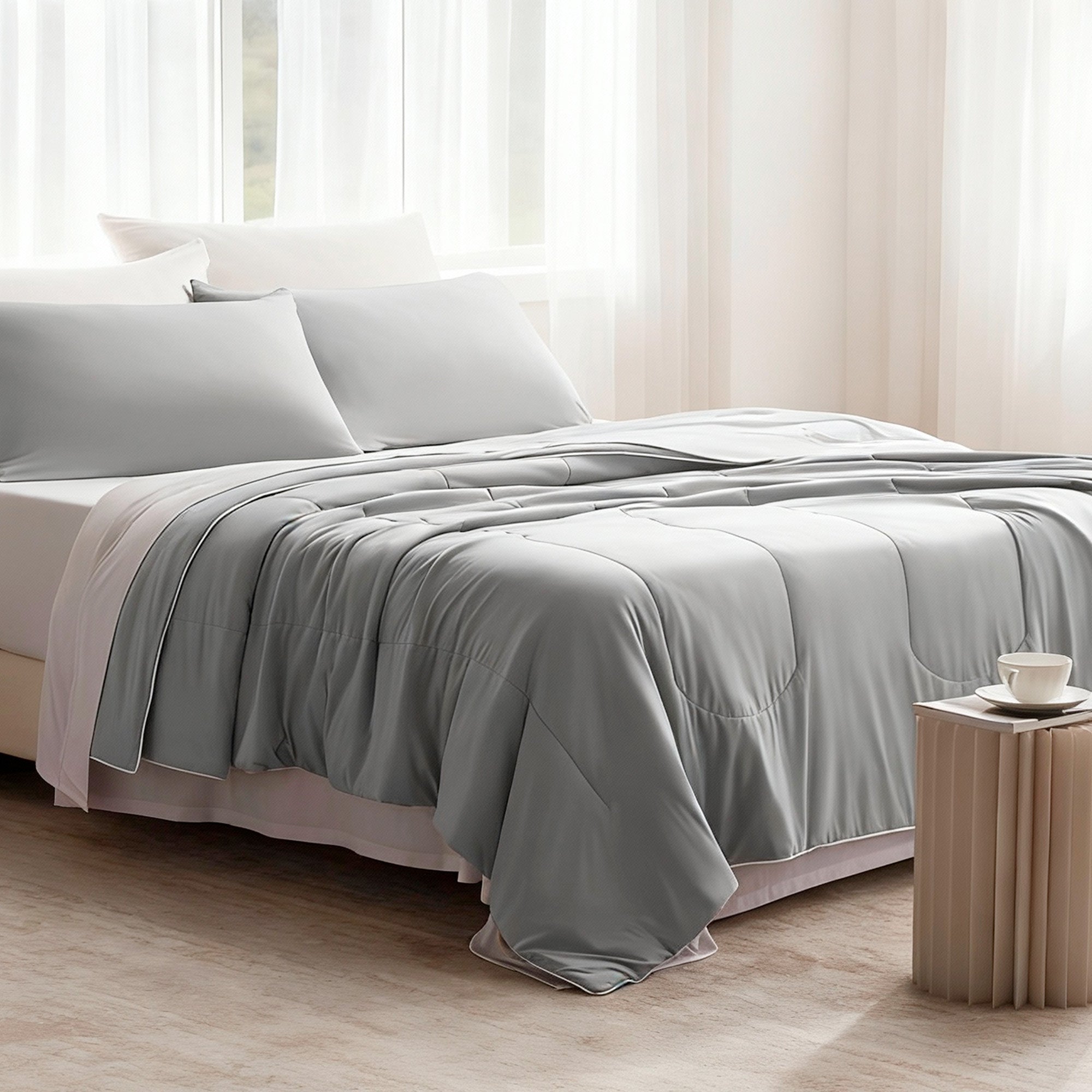 Cool Zone Reversible Cooling Comforter Set for Hot Sleepers-Gray