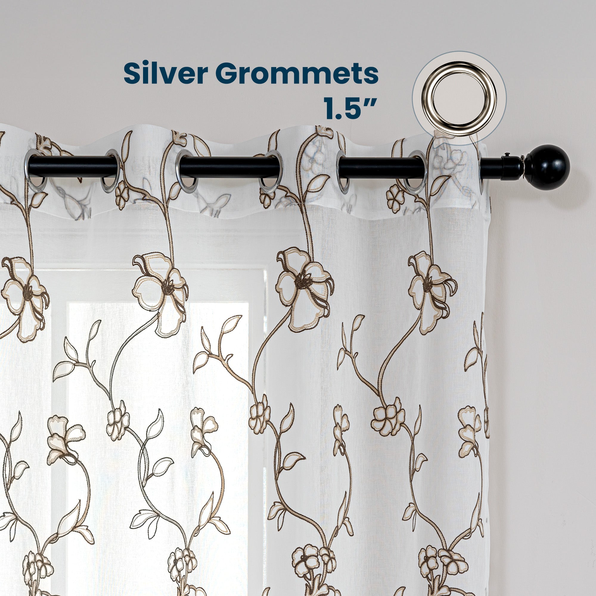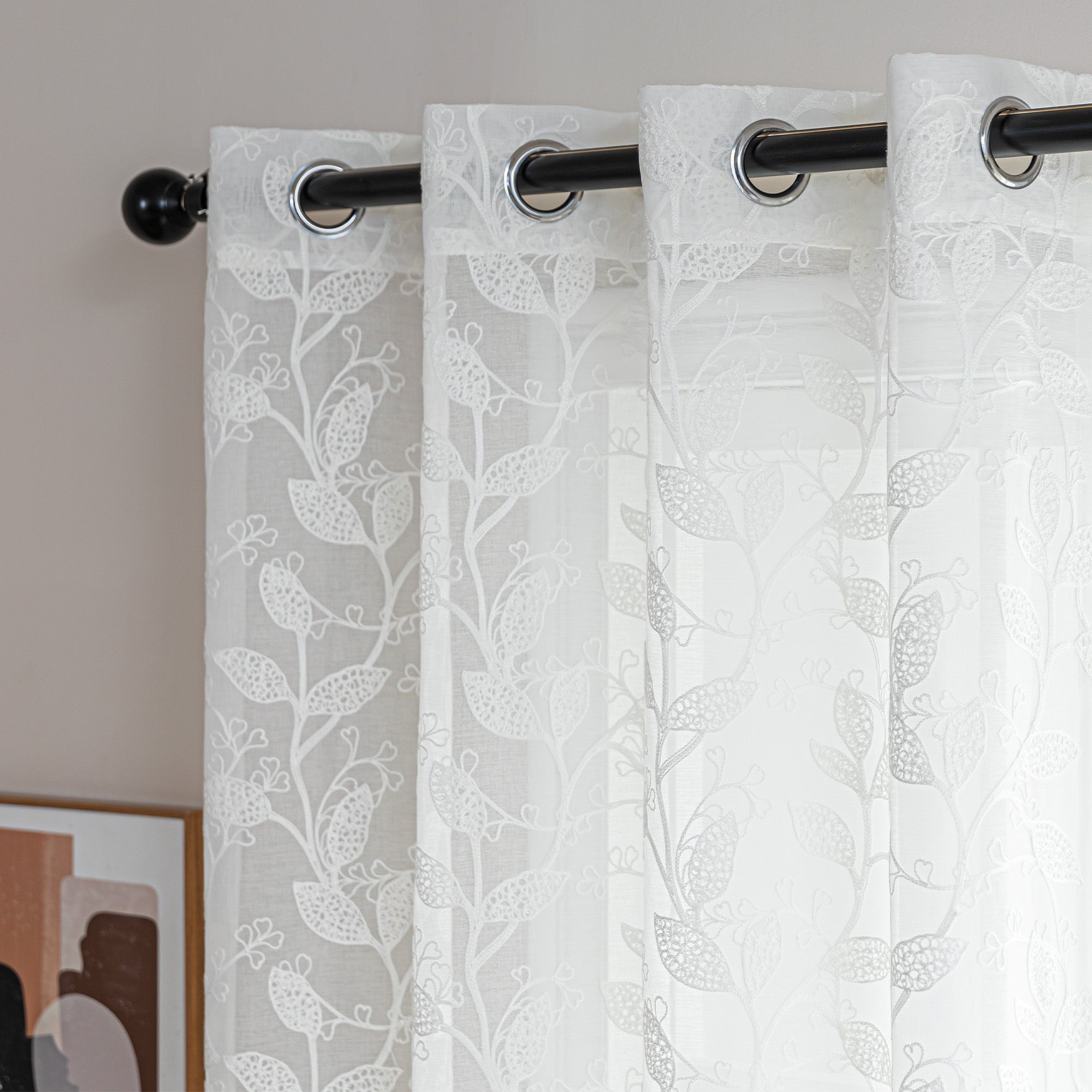 Sheer Curtains for Living Room and Bedroom, Embroidered Sheer Curtains White Sheer Curtain