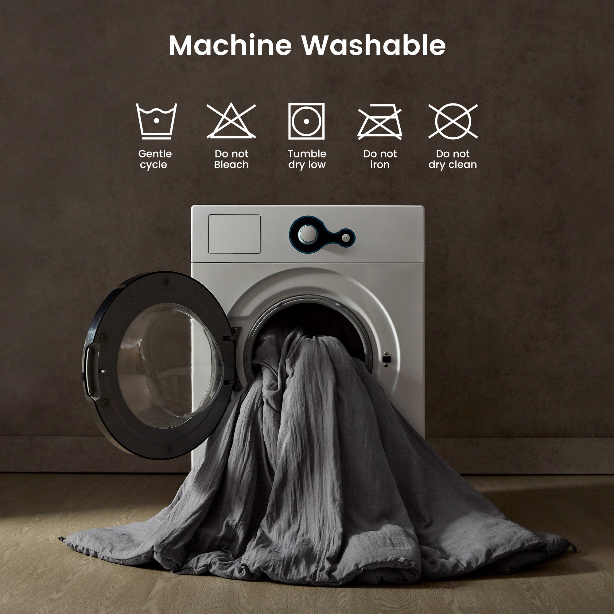 · 【EASY CARE】:Designed for hassle-free maintenance, this set is machine washable for your convenience. While ironing and high-temperature tumble drying are not recommended, its hidden YKK zipper ensures durability, and the 8 interior corner ties keep the duvet securely in place.
