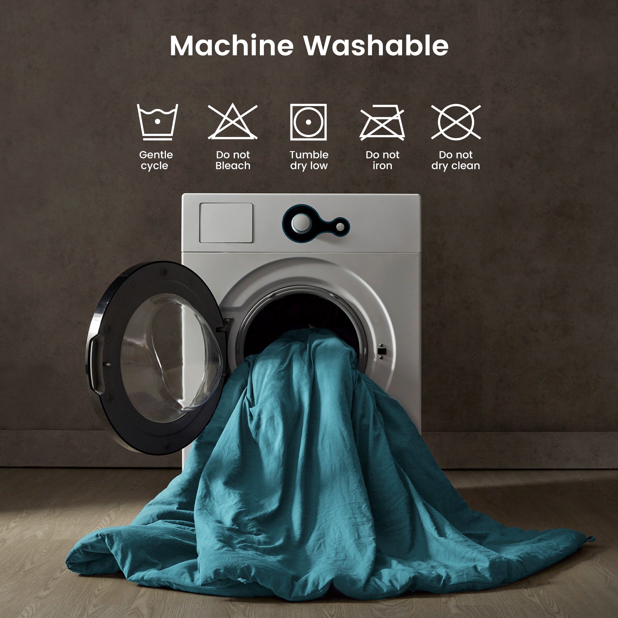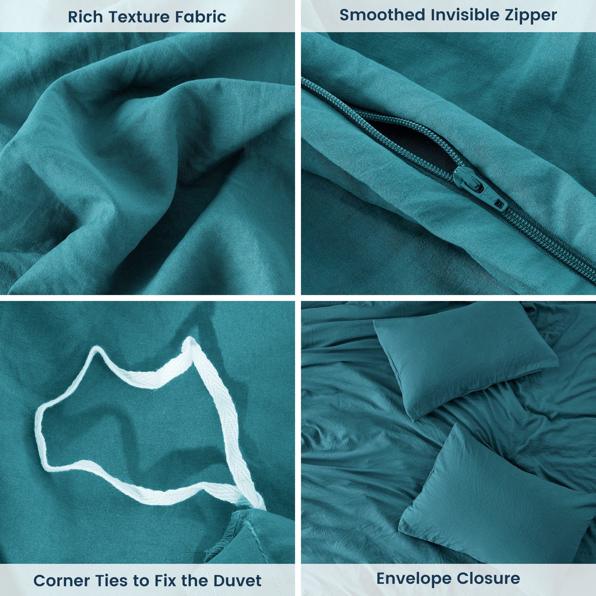 Stone Washed Duvet Cover Set - Teal