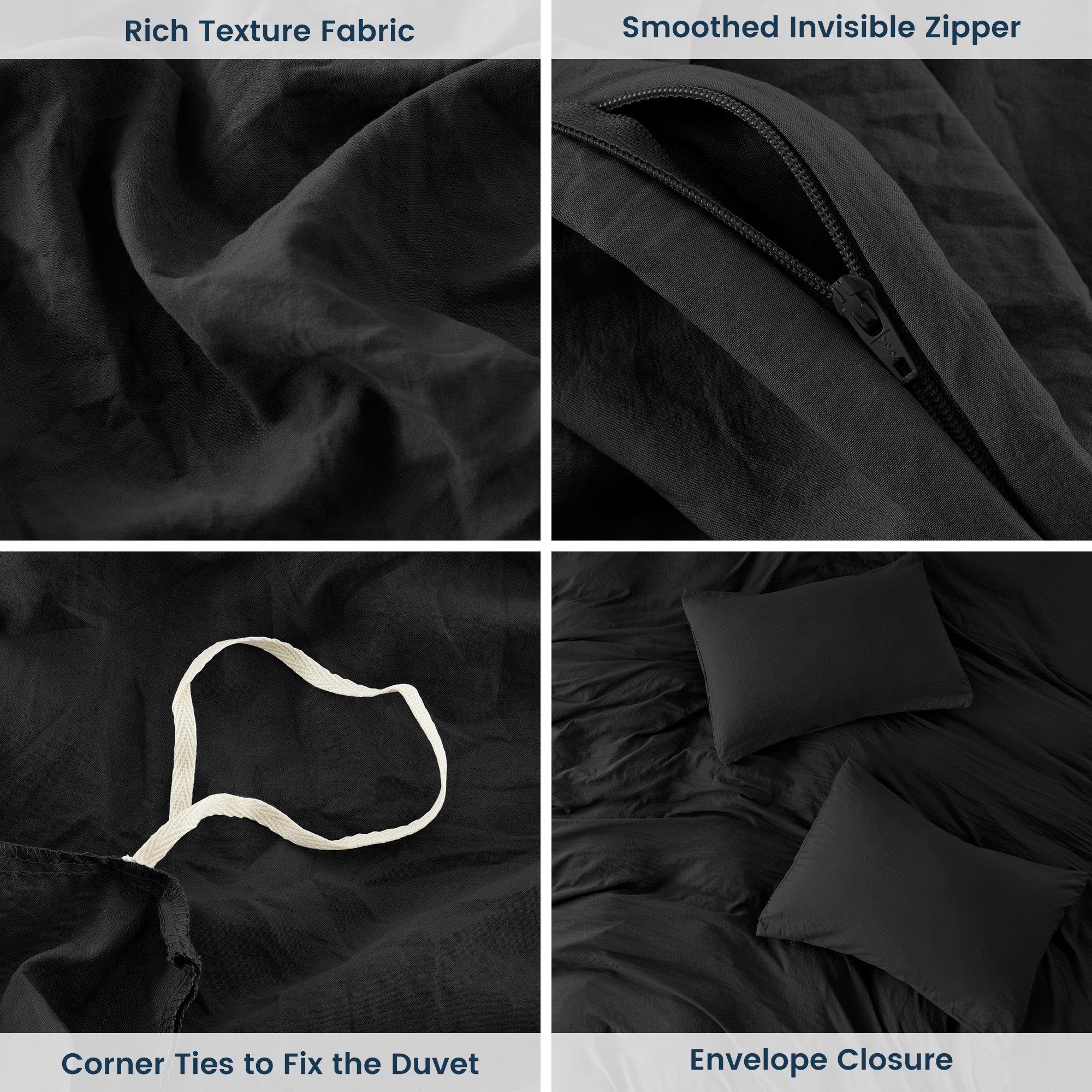 · 【NATURALLY WRINKLED】:Featuring a soft cotton-linen texture with a naturally wrinkled finish, this duvet cover set exudes a sophisticated, resort-like charm. Its relaxed elegance enhances your bedroom decor while providing a smoother, cozier feel.