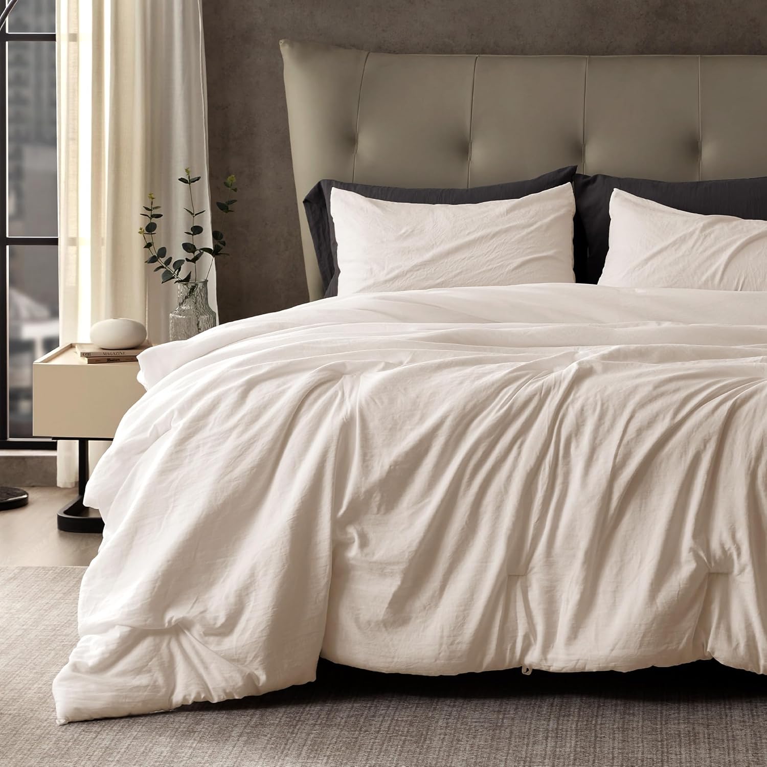 - Great Comfort: The comforter features a soft texture reminiscent of cotton and linen, with a slightly wrinkled appearance that evokes the feeling of staying at a luxurious resort. Textured Look, Simple Yet Classy A Fantastic Enhancer to Your Bedroom