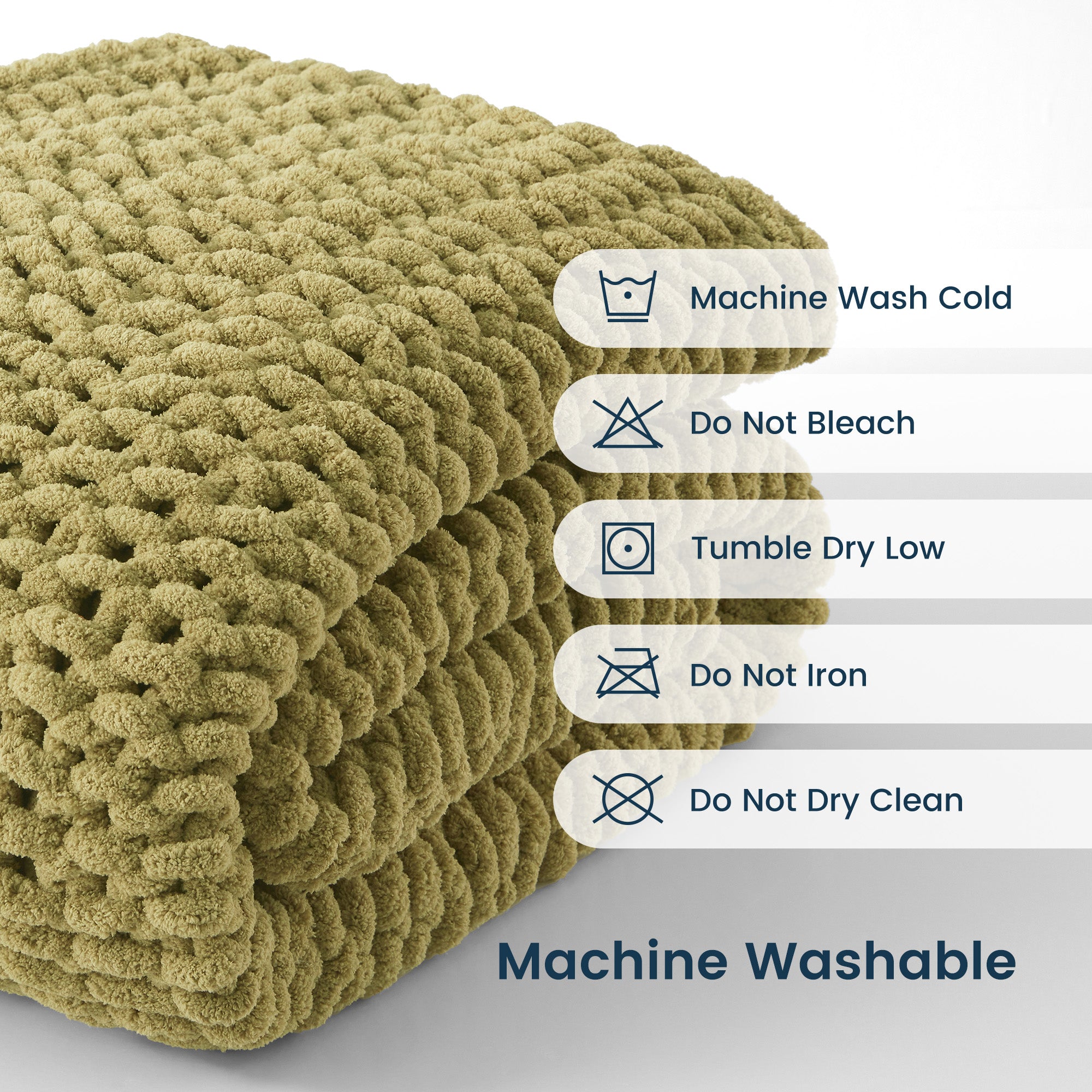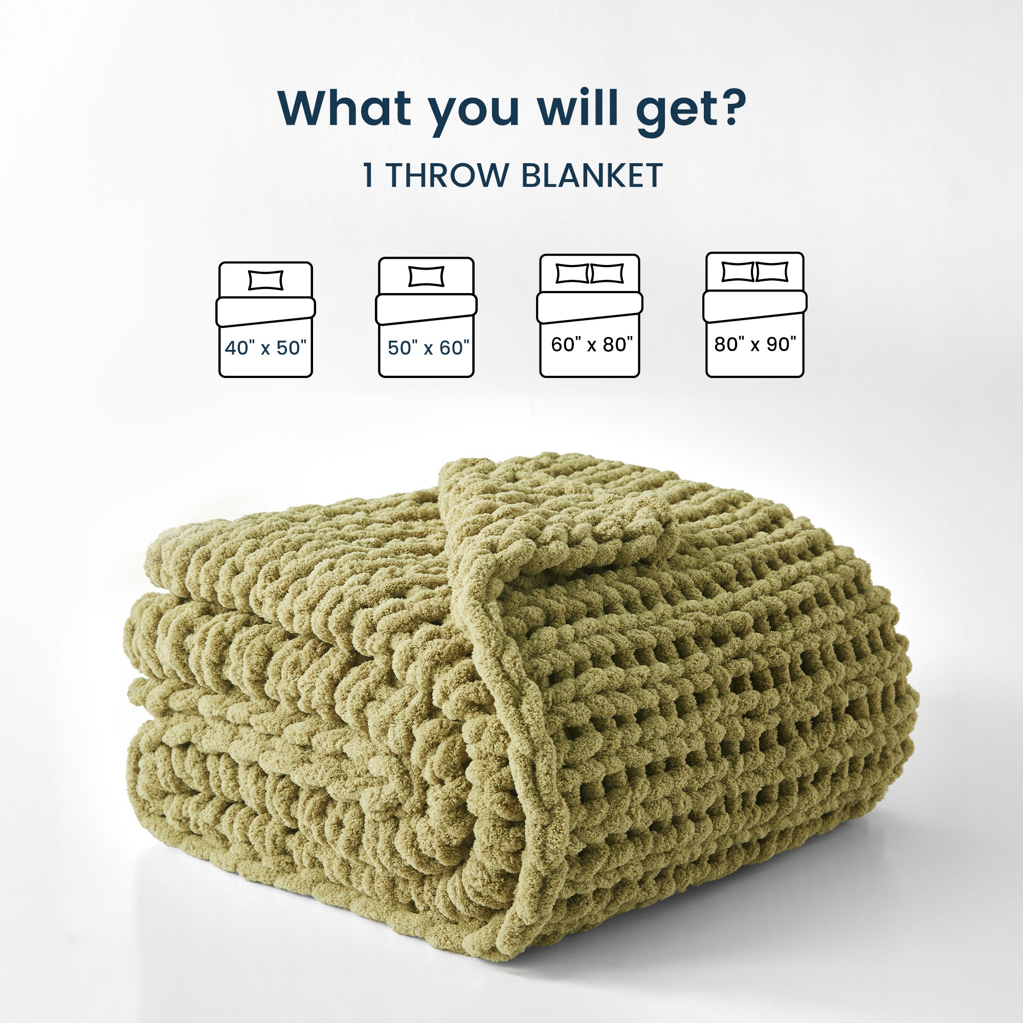 Handmade Chunky Knit Throw Blanket - Heavy & Cozy for Couch and Bed - Green
