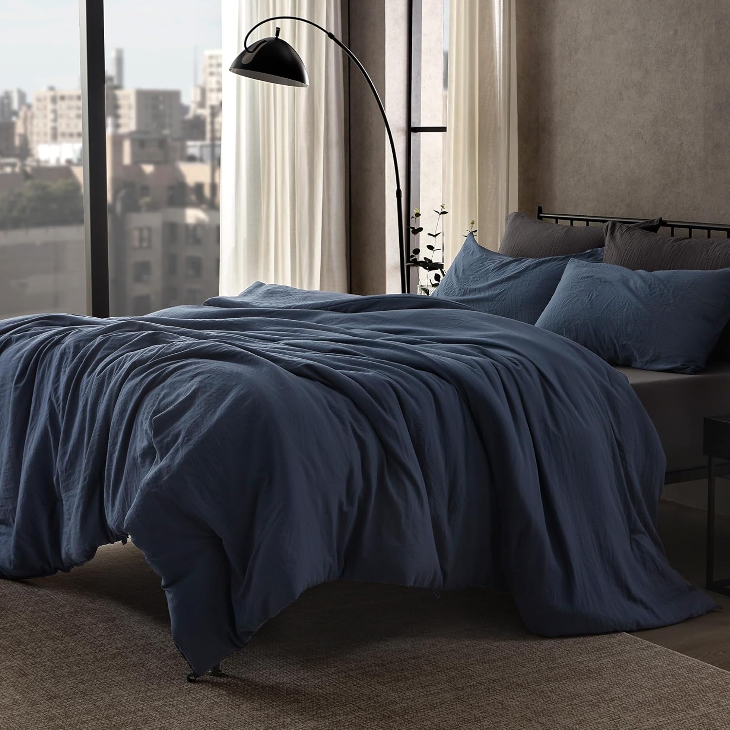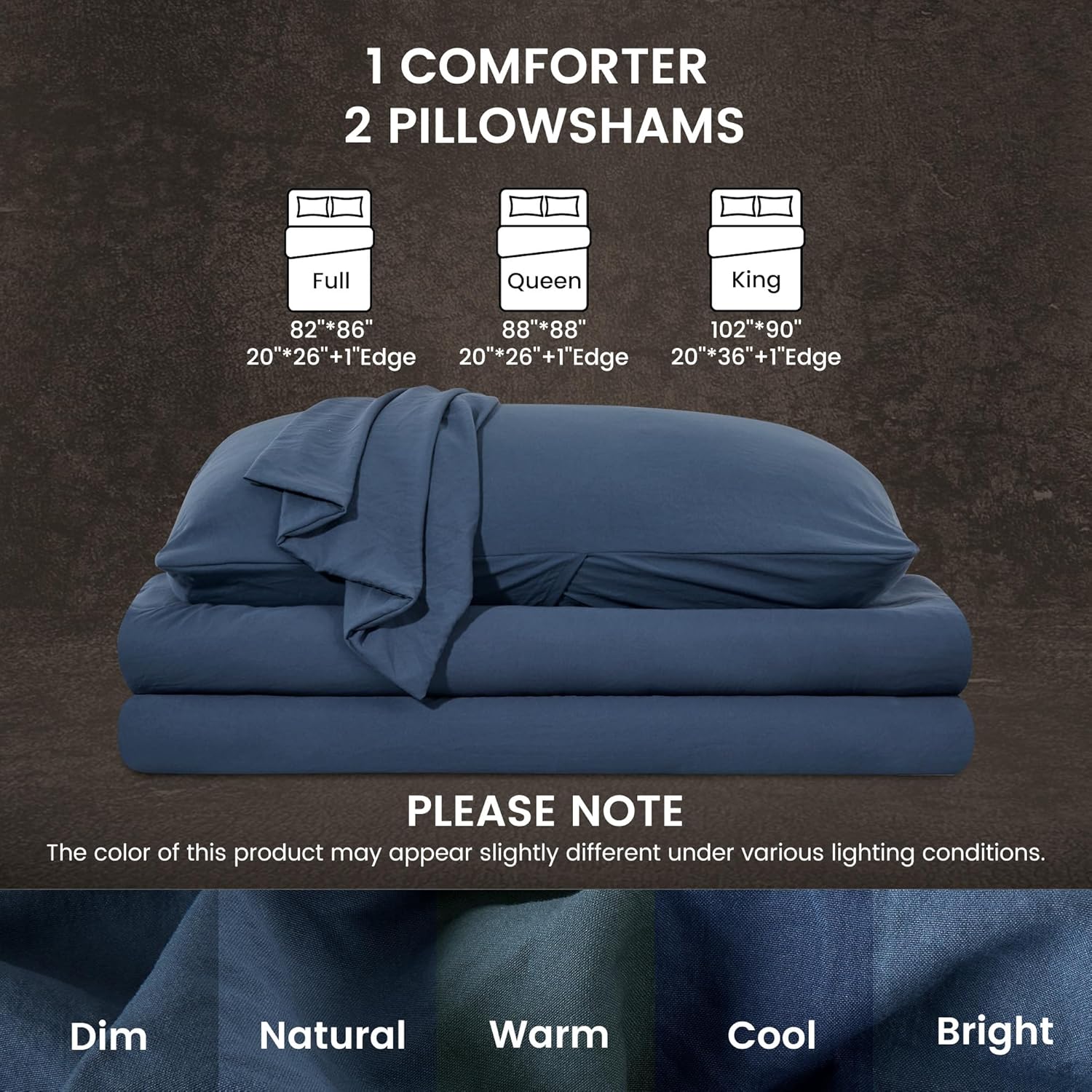 Stonewashed Comforter Set - Natural Wrinkle Texture with Pillow Sham - Navy